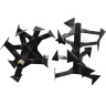 Среди навесного оборудования для мотоблоков, применяемых в приусадебных хозяйствах, отдельного внимания заслуживает фреза «Гусиные лапки», позволяющая проводить обработку почвы быстро и эффективно. И одним из инструментов этого вида является фреза «Гусиные лапки» для HUTER МК-9500, МК-11000, МК-13000, МК-15000». Она представляет собой неразборную конструкцию в виде небольшой оси с приваренными к ней четырьмя сегментами, содержащими по три режущих поверхности треугольной формы. Представленный комплект состоит из двух парных фрез, которые навешиваются на ось мотоблока вместо колёс.